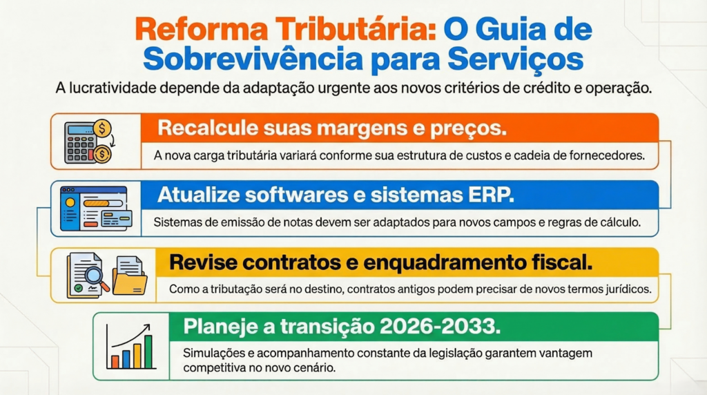 Essas medidas ajudam a reduzir riscos e preparar a empresa para o novo ambiente tributário.